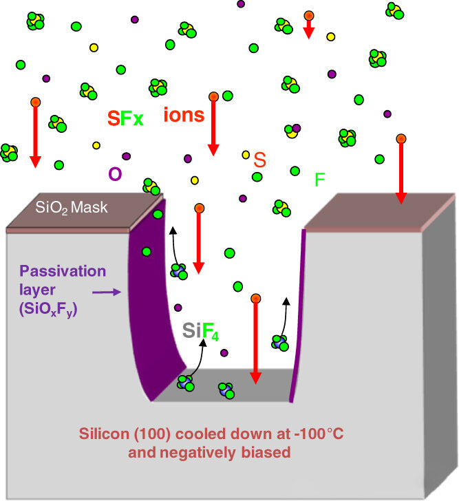 مثال کے طور پر کرسٹل لائن سلیکن کو لے کر ، سلیکن ایٹموں کا انتظام کرسٹل واقفیت میں مختلف ہوتا ہے ، جس کے نتیجے میں اینچنگ گیس اور اینچنگ کی شرحوں میں رد عمل میں مختلف حالت ہوتی ہے۔ اینچنگ کے دوران ، مادی خصوصیات میں یہ اختلافات سائیڈ والز پر مختلف مقامات پر متضاد اینچنگ گہرائی کا باعث بنتے ہیں ، جس سے بالآخر سائیڈ وال موڑنے کا سبب بنتا ہے۔