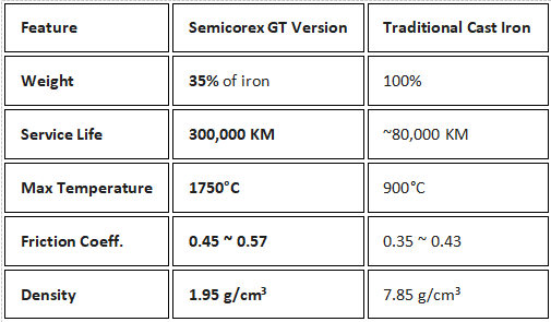 بڑے پیمانے پر کمی: جی ٹی ورژن کا وزن معیاری کاسٹ آئرن ڈسک کا صرف 35 ٪ ہے۔