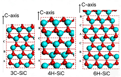 بلاشبہ، SiC مواد ایک Si ایٹم اور ایک C ایٹم کے واحد ٹیٹراہیڈرون پر مشتمل نہیں ہے، بلکہ لاتعداد Si اور C ایٹموں پر مشتمل ہے۔ سی اور سی ایٹموں کی ایک بڑی تعداد غیر متزلزل ڈبل ایٹم پرتیں تشکیل دیتی ہے (سی ایٹم کی ایک پرت اور سی ایٹم کی ایک پرت)، اور متعدد ڈبل ایٹم پرتیں ایس آئی سی کرسٹل بنانے کے لیے اسٹیک ہوتی ہیں۔ Si-C ڈبل جوہری تہوں کے اسٹیکنگ کے عمل کے دوران ہونے والی متواتر تبدیلیوں کی وجہ سے، اس وقت 200 سے زیادہ مختلف کرسٹل ڈھانچے ہیں جن میں الگ الگ انتظامات ہیں۔ فی الحال، عملی ایپلی کیشنز میں سب سے عام کرسٹل شکلیں 3C-SiC، 4H-SiC، اور 6H-SiC ہیں۔